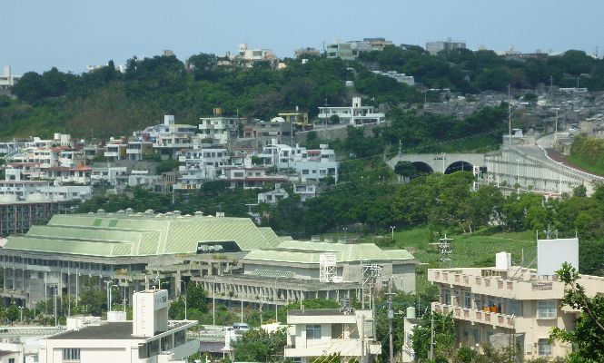 那覇市民体育館、識名トンネルも見えます。