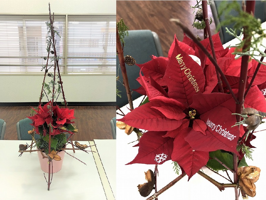 12月に入り、本格的に寒くなってきた今日この頃、いかがお過ごしでしょうか。 イルミネーションを飾るお家も増えてきて、夜道が明るくて散歩が楽しくなってきます!( ^ω^ ) さて、今回はかなり遅くなりましたが、新しく届けられたお花。(#^.^#) クリスマス仕様になっており、ポインセチアがきれいです(^^♪ 花びらに文字や模様がついています( *´艸`) ぜひ、見て下さい(`・ω・´)ゞ
