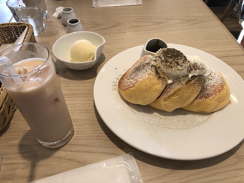 先ほどと同じく、寒さが厳しくなってきた今日この頃、皆様いかがお過ごしでしょうか? 久々の番外編です! 土曜日に瀬長島のウミカジテラスにあります、幸せのパンケーキに行ってきました! 14時頃、に行ったのですが、待っている人がいるくらい、大人気でした。 こちらで『焙じ茶のティラミスパンケーキ』を頂きました! パンケーキはふわふわしていて、甘く過ぎず、かなりおいしかったです! 皆さんもぜひ、一度行ってみてください。 かなりの量なのでシェアするのがいいかもしれませんね!(#^.^#)