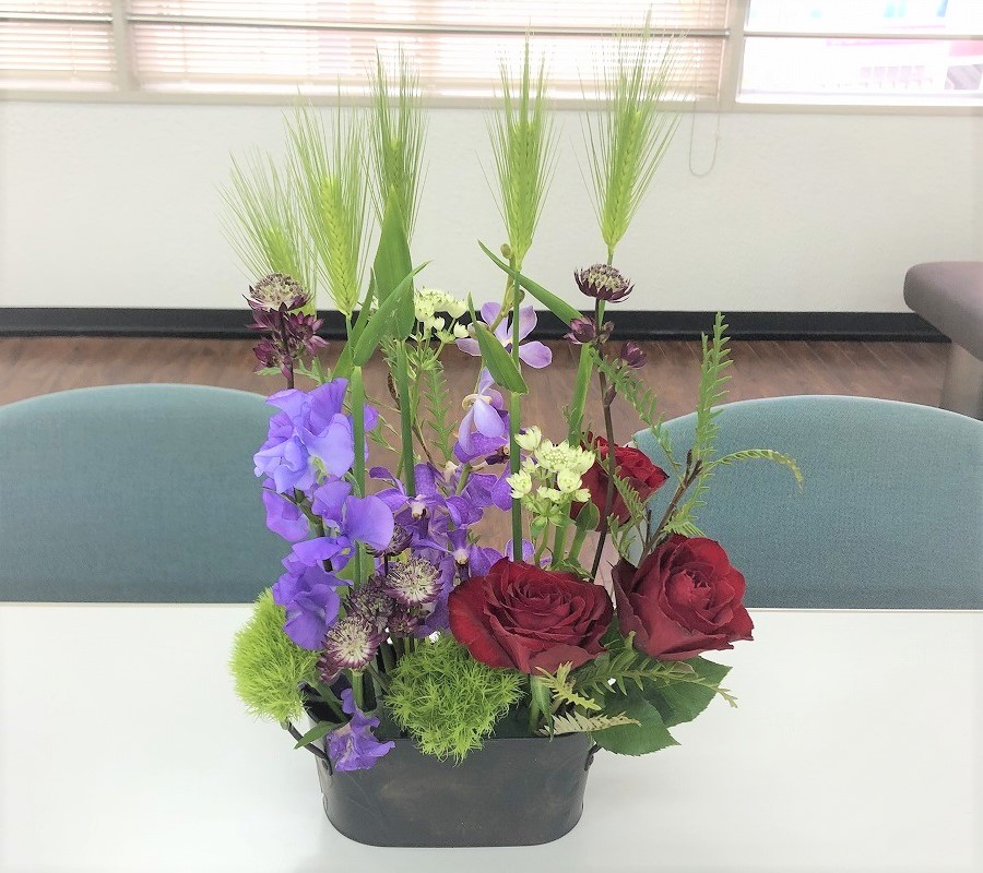 まだまだ、寒さがなくならない今日この頃、皆様いかがお過ごしでしょうか。 先週の金曜日頃から暑くなってきたはずなのに、今日の最高気温は14度( ;∀;) 何かがおかしい気がします。(-_-;) 沖縄でもコロナウイルスの感染者が出てしまい、早く、特効薬ができることを祈るばかりです。 さて、今回のお花です! 今回もきれいな花でバラも活けられています! ぜひ、見て下さい!