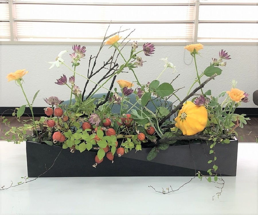 少しづつ暗くなるのが早くって来ている今日この頃、皆様、いかがお過ごしでしょうか。 以前なら19時くらいまでは明るかったのに、もう18時には暗くなり始めていますね~ ようやく秋らしくなってきましたね(#^^#) さて、今回のお花です! 今回のお花も可愛らしいお花で、なんと、かわいいカボチャまであります!ぜひ、見て下さい!
