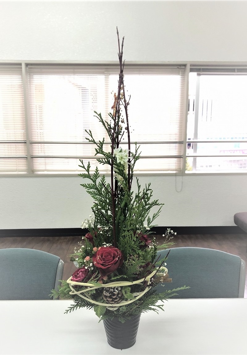 雨がやみ、少しは過ごしやすくなってきた今日この頃、皆様いかがお過ごしでしょうか。 今日はクリスマス!コロナの影響で外出しづらいですが、楽しく過ごしていますでしょうか? 自分としては、クリスマスケーキの半額を期待したいです!!( `ー´)ノ さて、今回のお花です! 今回もクリスマスをイメージしたお花です!ぜひ、見て下さい!