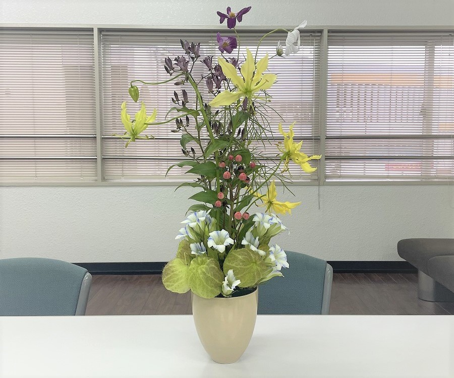 徐々に寒くなっていき、太陽が出ていない時にはひんやりする今日この頃、皆様、いかがお過ごしでしょうか。 ようやく、秋!って感じがしてきましたね~(#^^#) 過ごしやすく、いい季節なので、一番好きな季節ですね(^^♪ さて、いつスーツに衣替えしましょう・・・(;^ω^) さて、今回のお花です! 今回は縦長のカラフルなお花です! ぜひ見てください!!