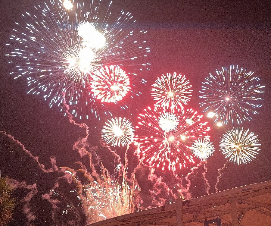 どんどん暑くなっていく今日この頃、皆様いかがお過ごしでしょうか。 最近は急な雨が多くなって対応が大変ですね~(;^ω^) 今日はすごい土砂降りで室内にいたくなりました(#^^#) さて、今回は先週の土曜日に行われました、海洋博の花火です! コロナ明け、久々の花火は圧巻でした! 渋滞もすごかったです・・・ 雨が降ったりやんだりで花火が見れるか心配でしたが、無事に見れてよかったです! 又、来年も行きたいですね!! ぜひ見てください!!