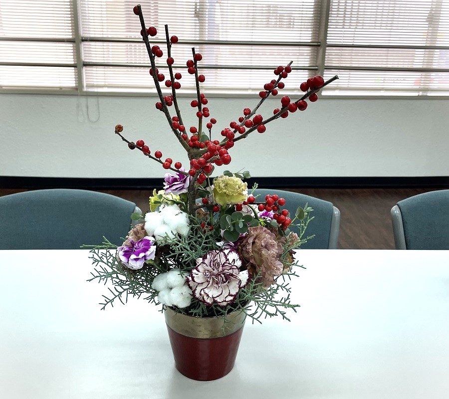 12月も中盤になりますます寒さが厳しくなってきた今日この頃、皆様いかがお過ごしでしょうか。 寒いです!(;^ω^) 気温の減少がひどすぎる気がします!もう少しゆっくり寒くなってほしかったです・・・ クリスマスはもう少し落ち着いた寒さを期待したいです! さて、今回のお花です! 今回は少し早いですが正月仕様のきれいなお花です!! 前回のクリスマス仕様のお花と一緒にぜひ見てください!!