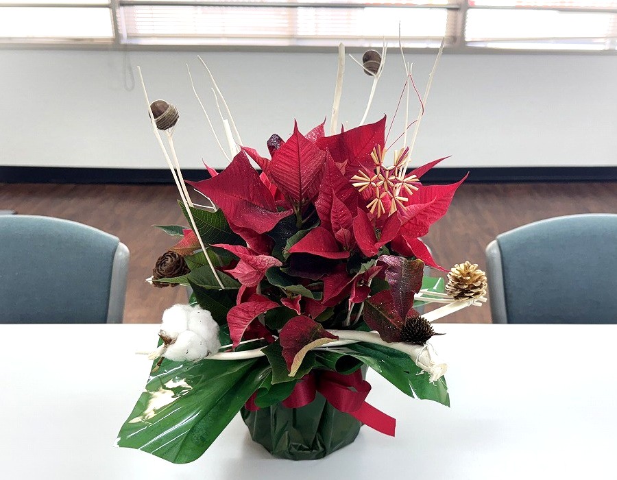 12月も中旬に差し掛かり、そろそろ今年が終わる今日この頃、皆様いかがお過ごしでしょうか。 日々、寒くなってきましたね~ 雨が降っているせいか、外と中とでは寒さが違いますね・・・ 天気予報を見てもクリスマス頃は20℃を下回っており、かなりの冷え込みになりそうです。。 風邪、ひかないように気を付けねば!!! さて、今回のお花です! 今回はクリスマス仕様できれいなお花です! ぜひ、ご覧ください!